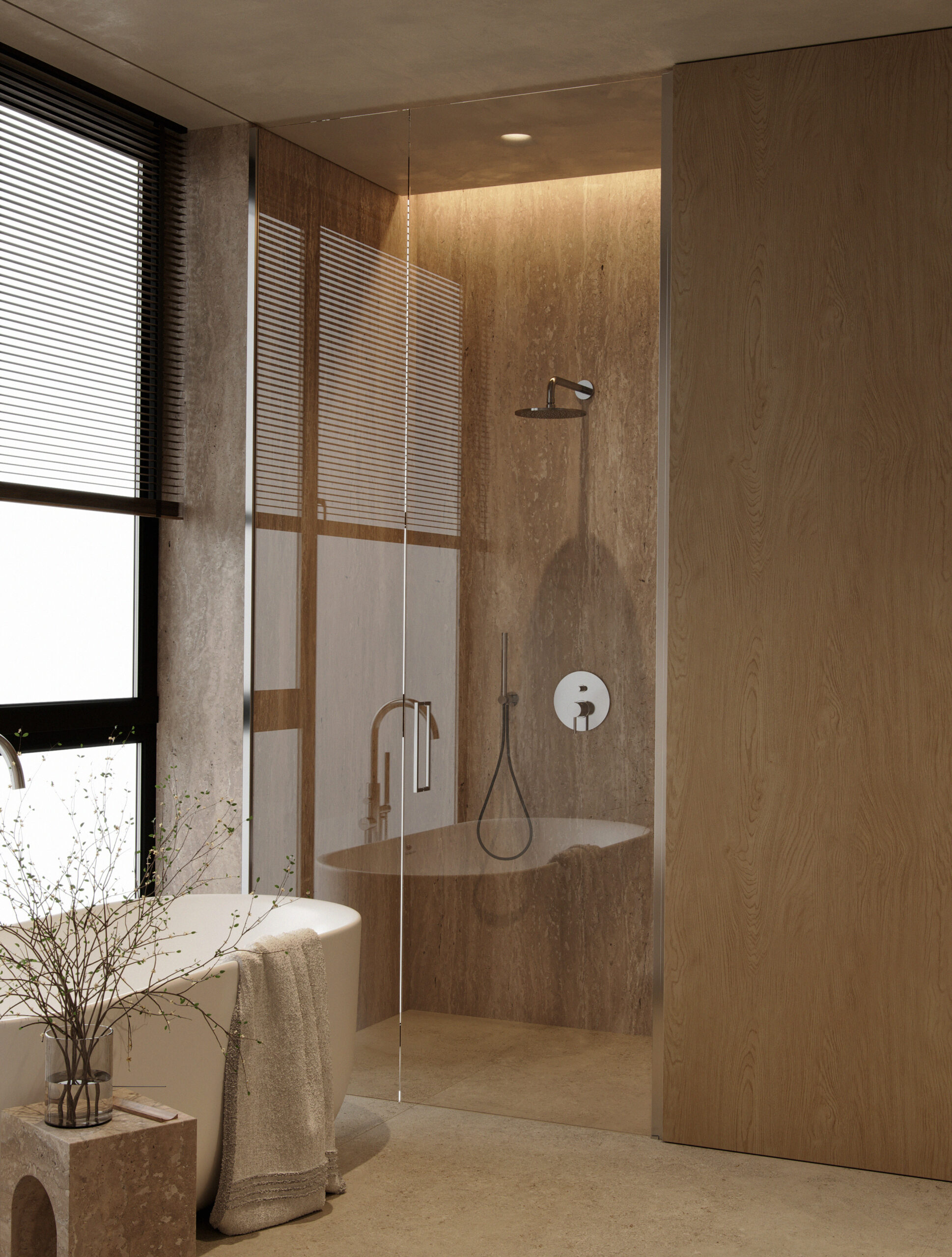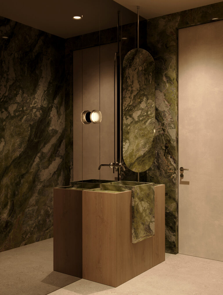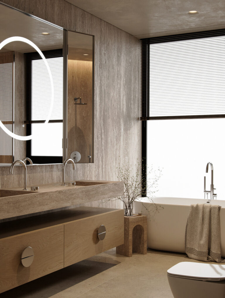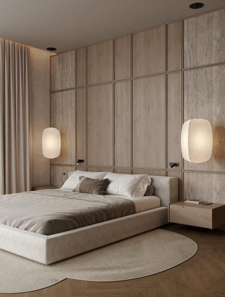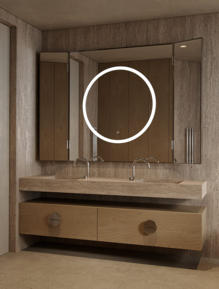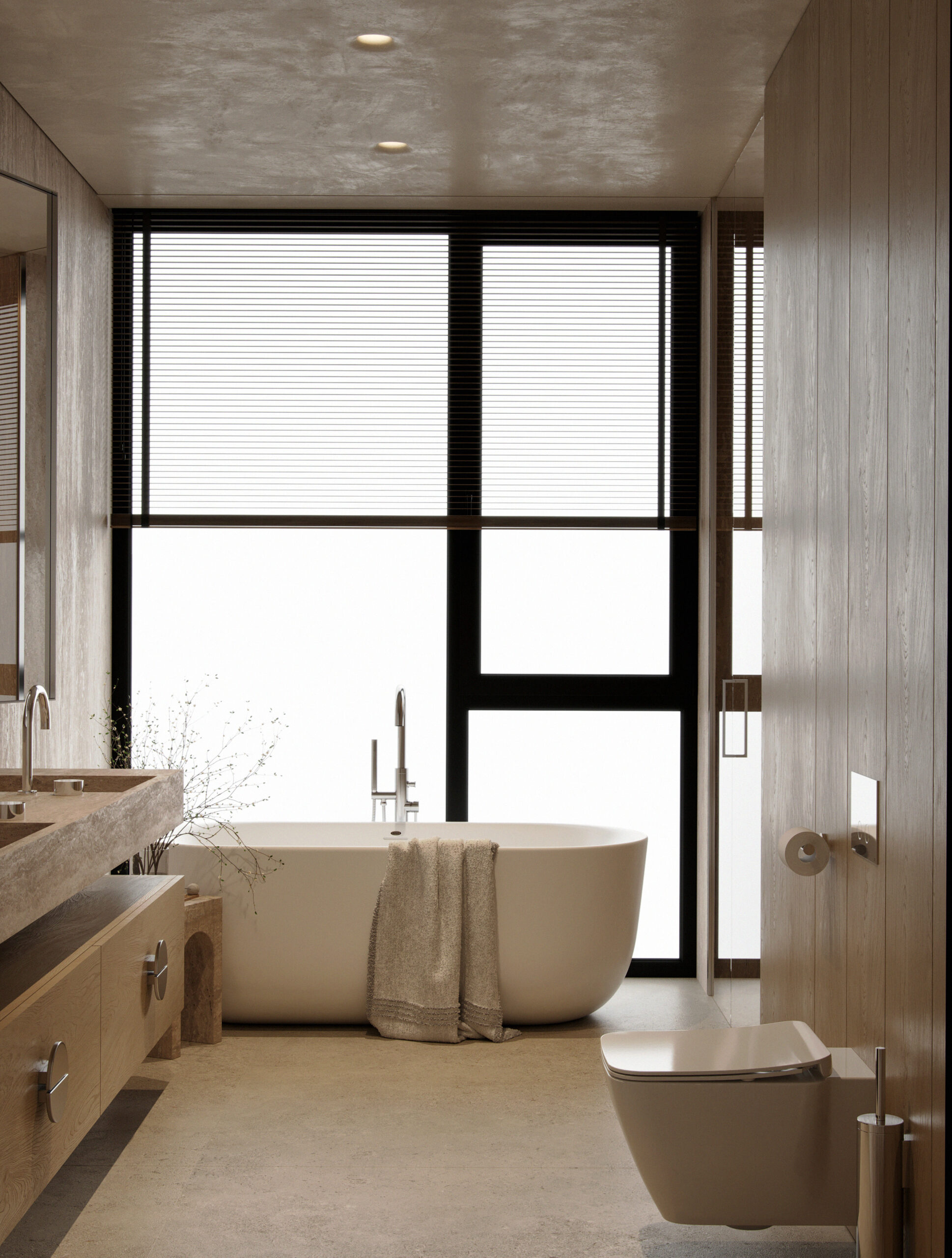 This interior project blends modern luxury with natural warmth, creating a timeless open-plan living and dining space. The design features a seamless combination of natural oak wood, soft neutral fabrics, and elegant stone finishes. A sculptural marble island anchors the kitchen, while bespoke lighting and organic textures enhance the sense of harmony. Minimalist yet inviting, this project celebrates calm sophistication and understated elegance.