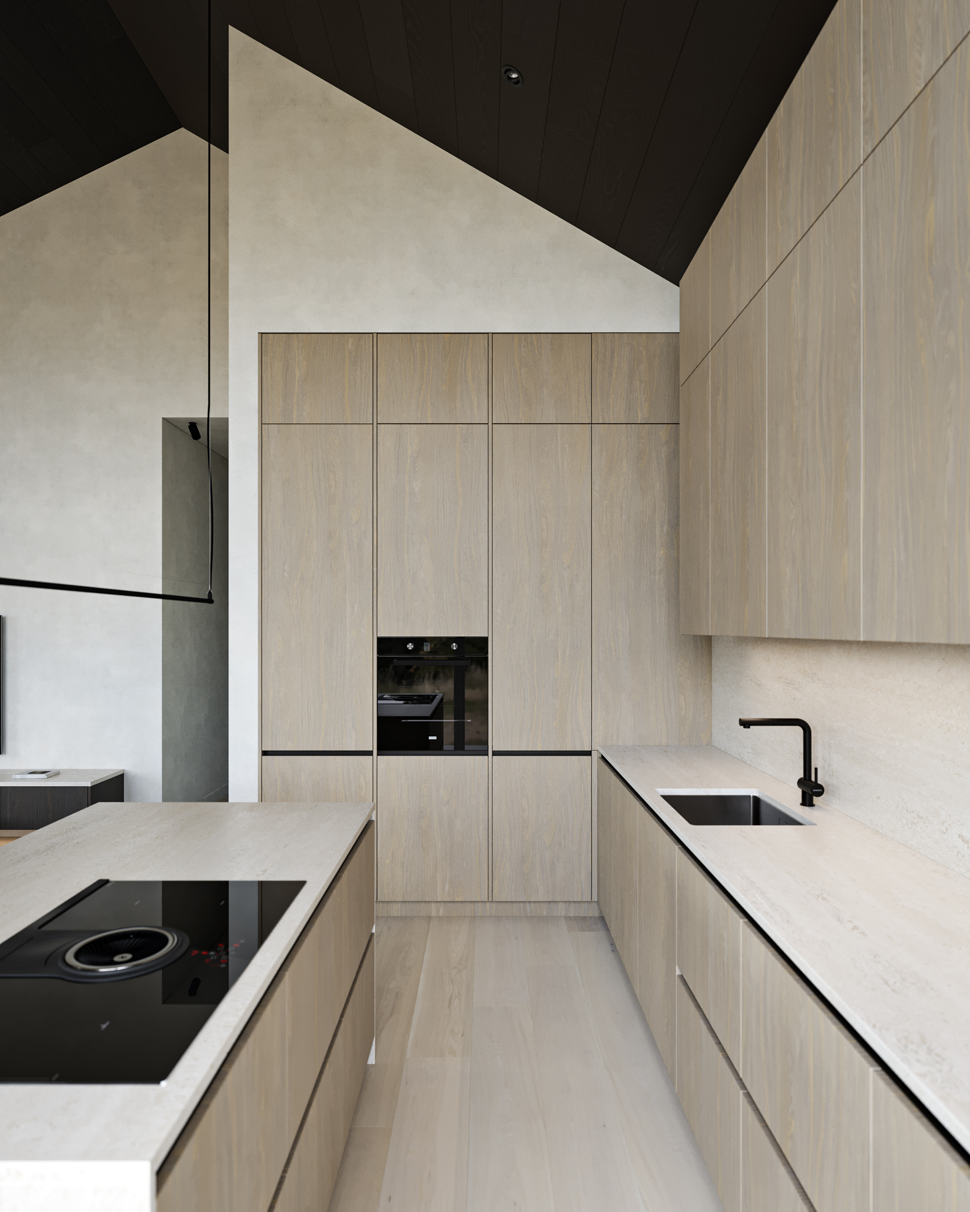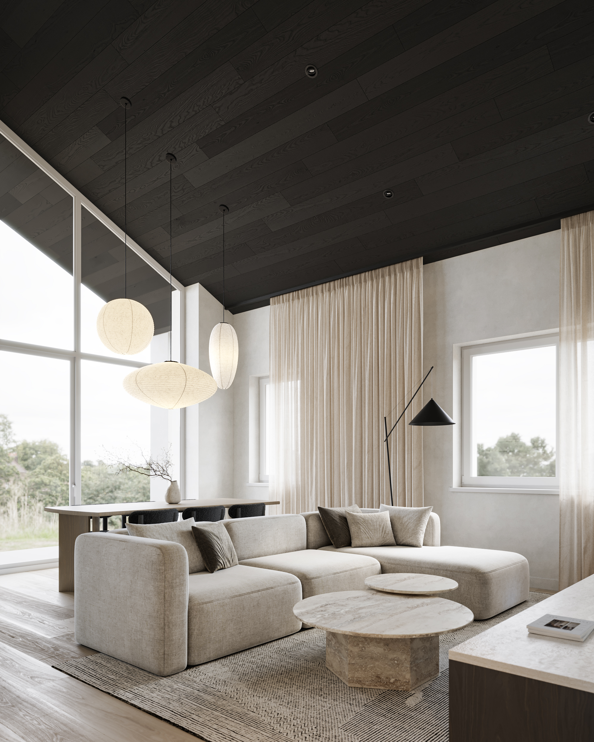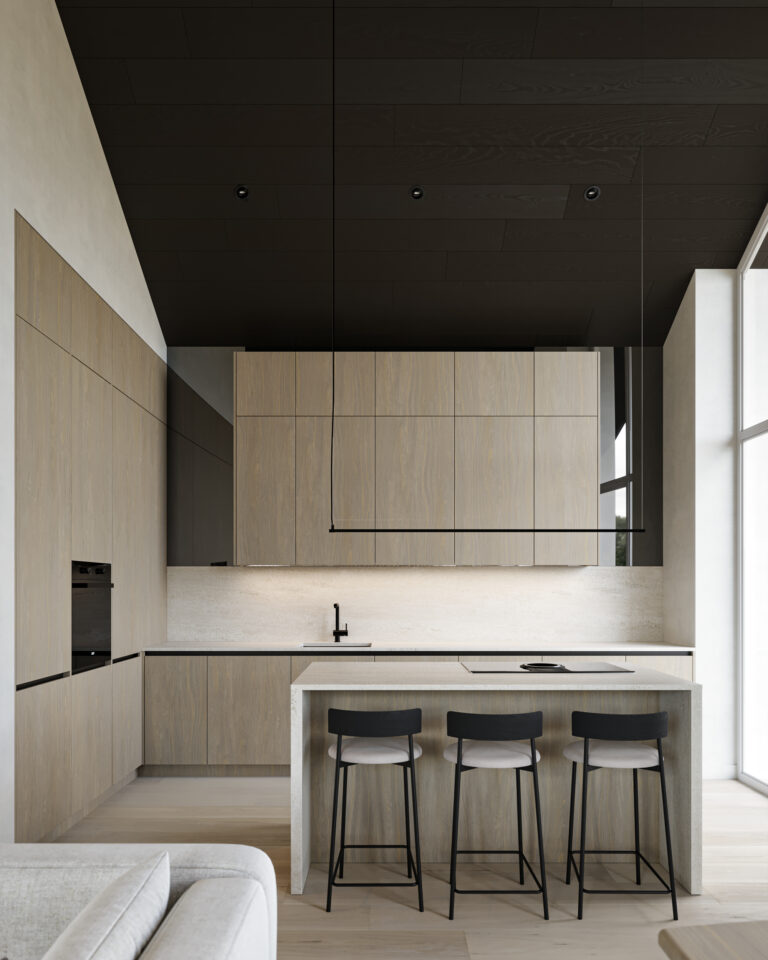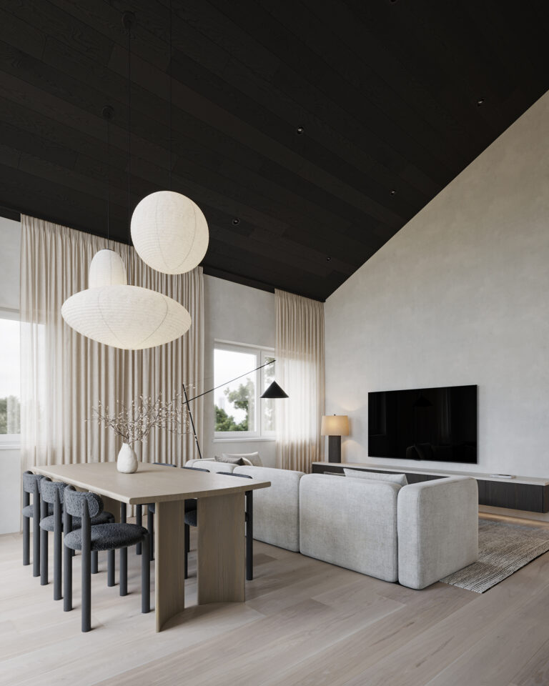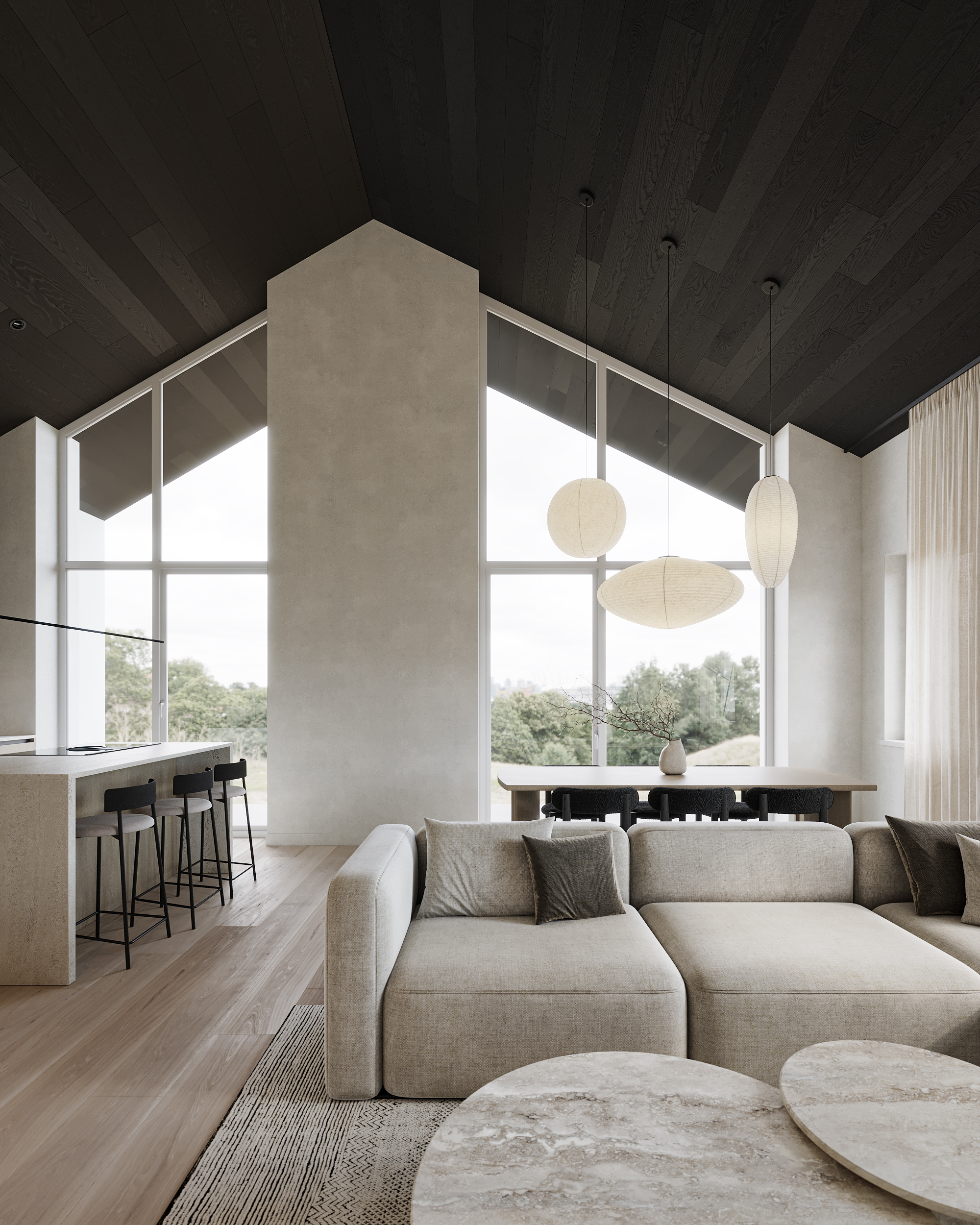 Stunning home where modern luxury meets cozy charm! High sloped ceilings with rich dark wood create an airy, elegant feel, while the bright wood kitchen adds warmth and contrast. Natural stone accents and soft, inviting fabrics complete the space, making it the perfect blend of sophistication and comfort.